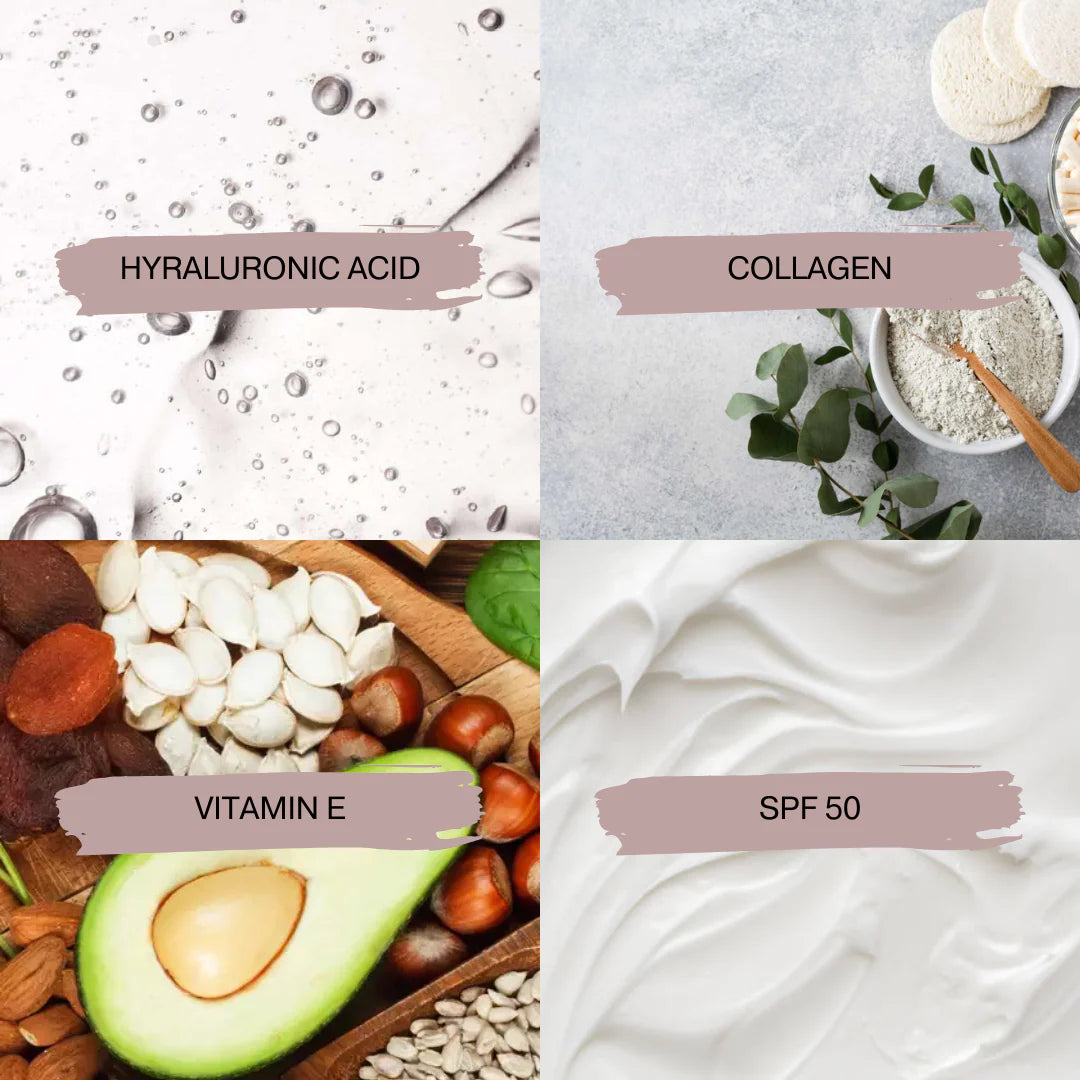 Our 4-in-1 liquid foundation is crafted with nourishing ingredients that hydrate, protect, and enhance your complexion. Enriched with botanical extracts, lightweight oils, and SPF 50+ for daily sun protection, it leaves your skin soft and beautiful. Our foundation is suitable for all skin types.